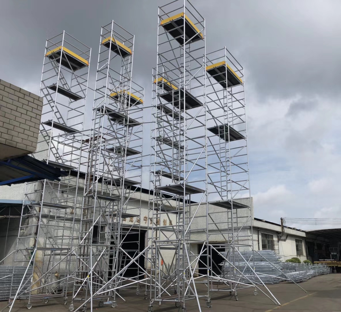 双宽移动铝脚手架4层快装脚手架8米-深圳铝合金脚手架厂家